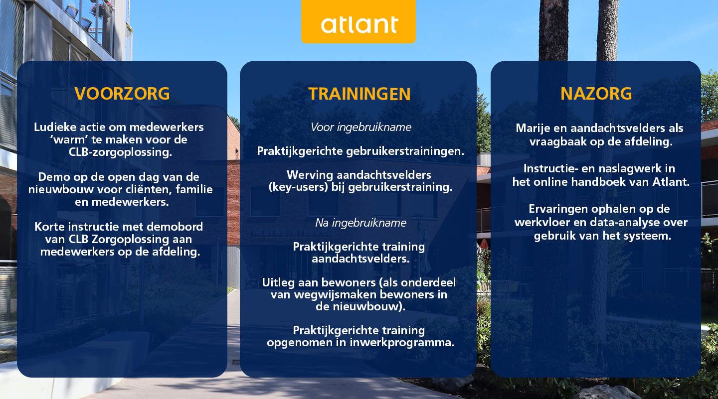 Het systeem is met de inhuizing van de bewoners in gebruik genomen. De ingebruikname is soepel verlopen en alle trainingen zijn als zeer positief ervaren. Marije vertelt: wat heel erg heeft geholpen is dat medewerkers van te voren al de voordelen van het nieuwe systeem ervaren. En die voordelen waren groot, dat maakte dat mensen erg enthousiast waren om met het nieuwe CLB-systeem te gaan werken.